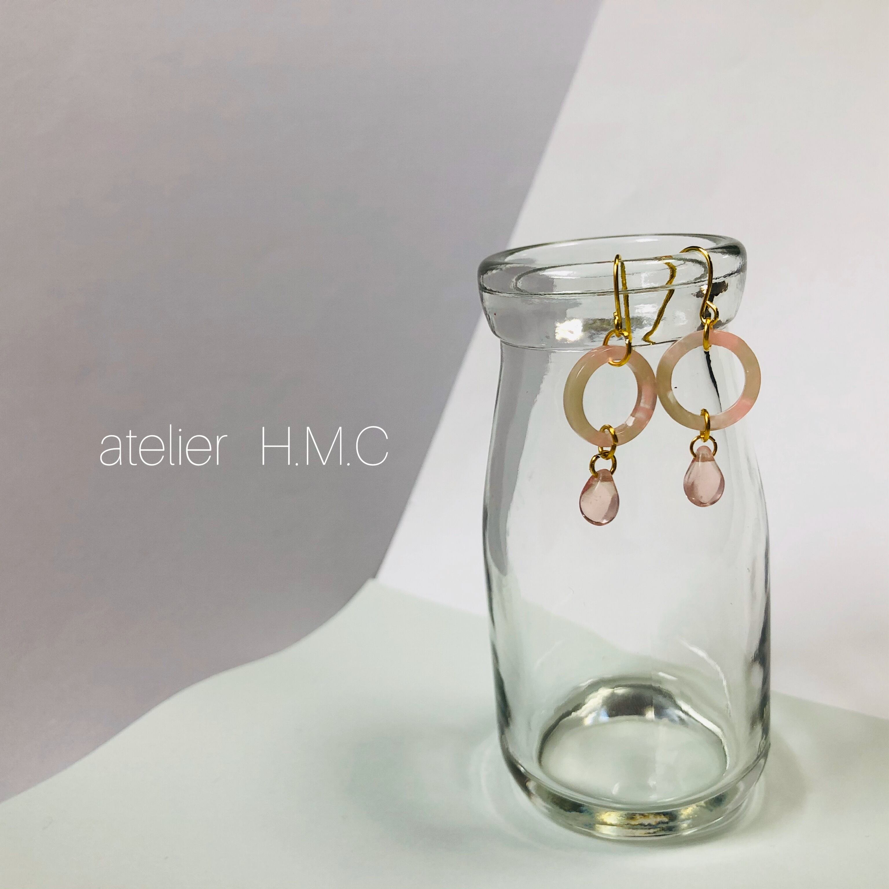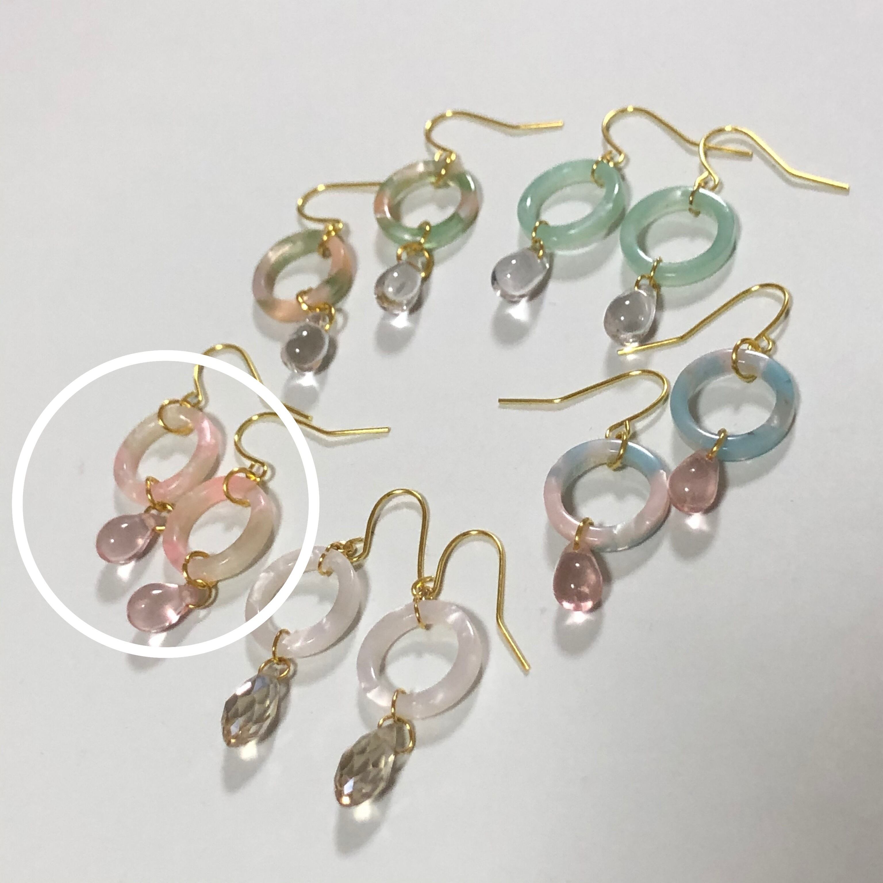 ほんのり若葉とサクラを思わせるお色のピアス。